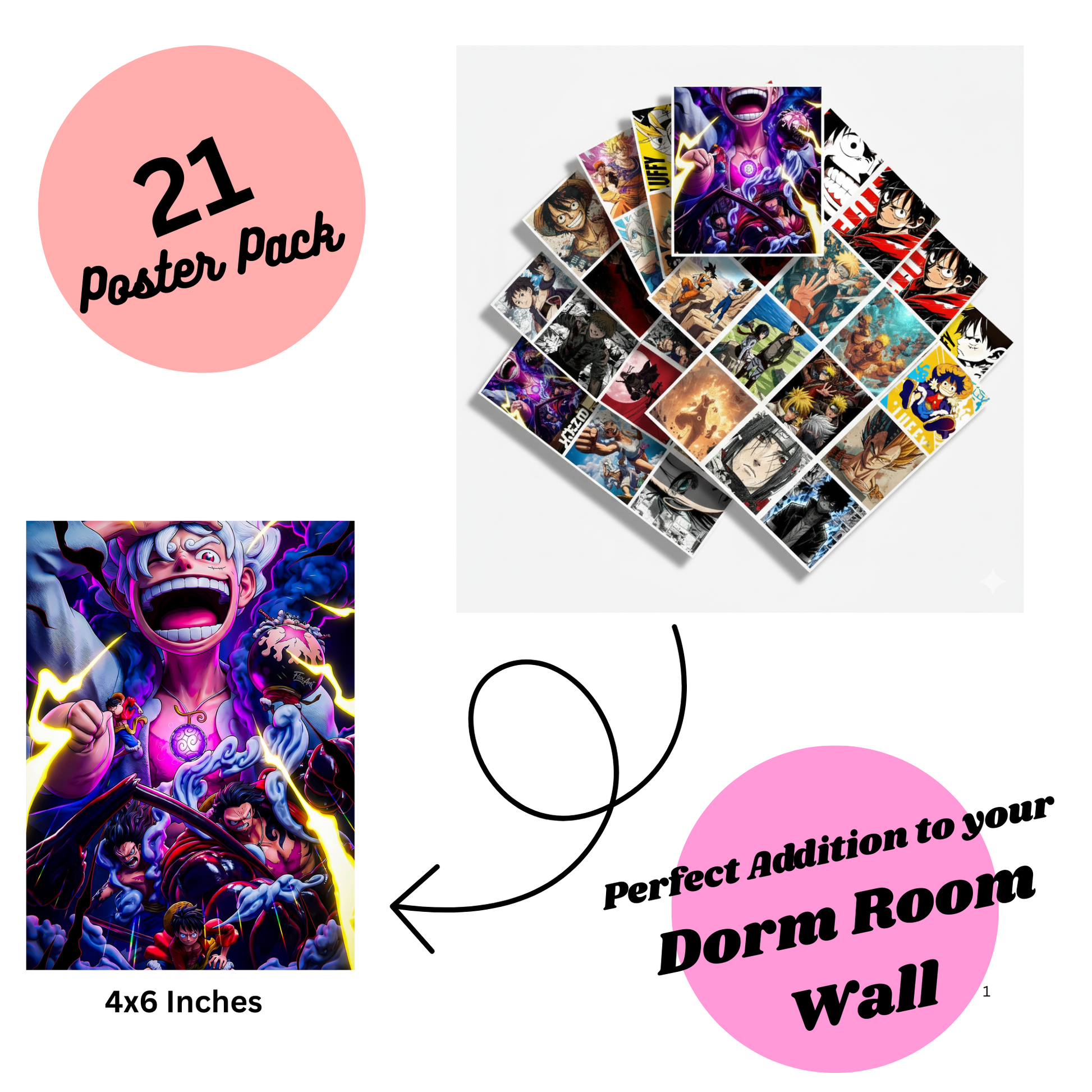 Bring the world of anime right into your room with this exclusive 21-poster mini collection! Each poster is 4×6 inches, making them perfect for walls, desks, scrapbooks, or even as collectible items. Whether you’re decorating your space or gifting a fellow anime lover, this set is designed to impress.